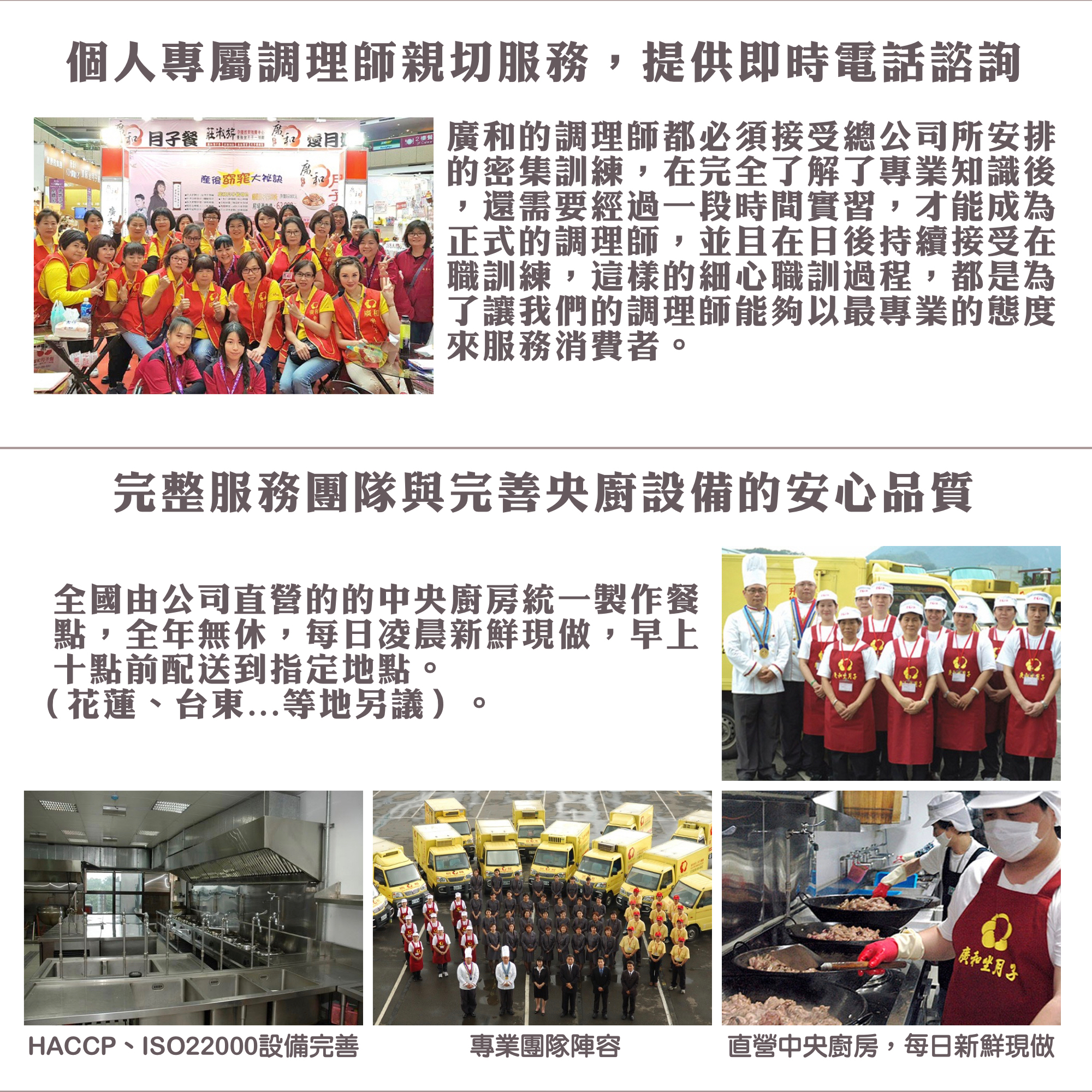 廣和以新鮮直送為傲,我們將服務範圍擴展到需要術後補養的患者,即使在住院中也能吃到新鮮的術後營養補給膳食-康養術後餐;如果在家調養,也是每日早晨配送,新鮮看的見。