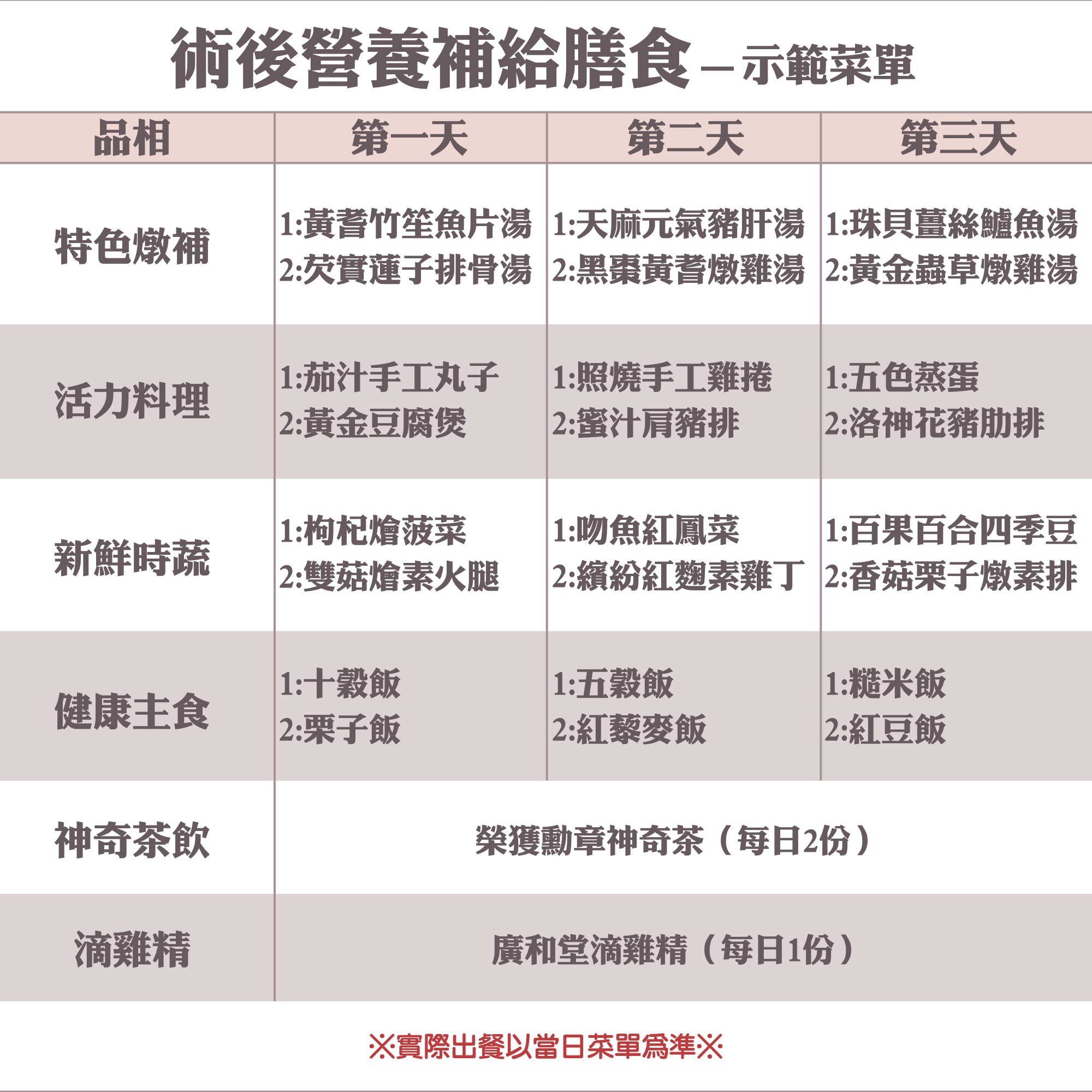 實際出餐以當日菜單為準