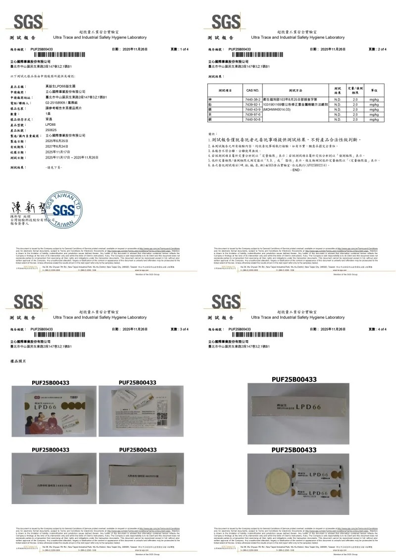 當然有。LPD66益生菌除了對重金屬有幫助之外,還能促進營養吸收、使大便順暢,調節消化道平衡等。